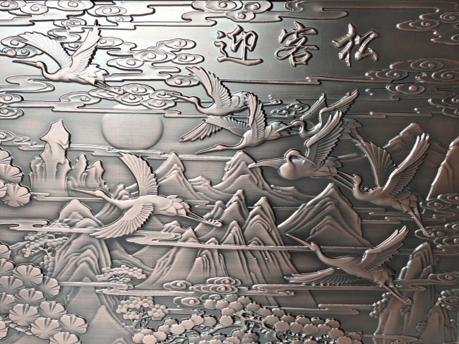 純銅純鋁雕刻屏風(fēng)背景墻,銅浮雕壁畫以其特有的金屬性質(zhì),解決了木制品的缺點(diǎn),能夠經(jīng)受戶外的風(fēng)吹雨淋而不變質(zhì),能夠有效的防火防潮防蟲蛀,好的耐候性,10年不變色。純銅雕刻屏風(fēng)背景墻,銅鋁浮雕壁畫經(jīng)過精雕細(xì)琢,既呈現(xiàn)出現(xiàn)代氣息,又不失古典韻味,融中西文化于一體,呈現(xiàn)出古典與現(xiàn)代的美感。