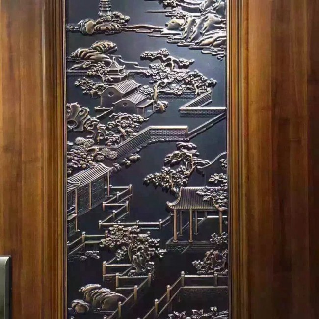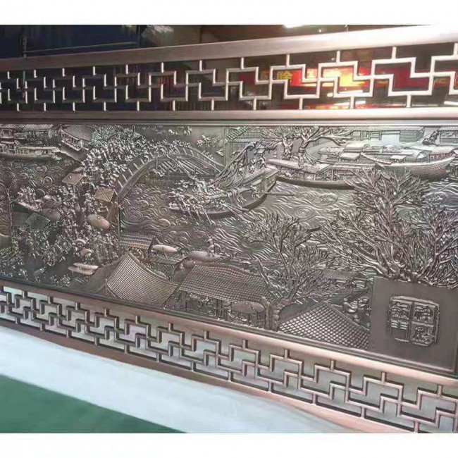 鋁板雕刻壁畫,酒店大堂鋁板雕刻壁畫廠家,清晰秀氣的古銅花紋,近看美觀大方,很有古典藝術(shù)之美;遠看秀氣可人,可愛即有憐香惜玉之韻味。古銅雕刻拉手,藝術(shù)精品本身就會有著一種古典的時尚氣息,古銅雕刻鋁板,雕刻鋁板拉手是在鋁板和銅析的基礎上進行深度雕刻共紋,表面拋光處理后再進行鍍色處理!來電咨詢,