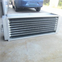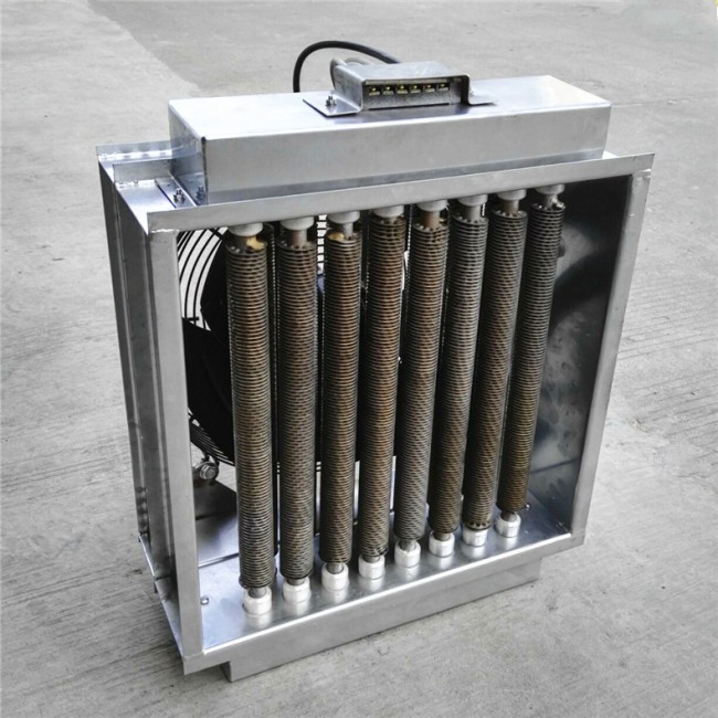 風(fēng)道加熱器主要用于風(fēng)道中的空氣加熱,規(guī)格分低溫、中溫、高溫三種形式,在結(jié)構(gòu)上的共同之處是采用了用鋼板支撐電熱管以減少風(fēng)機(jī)停止時(shí)電熱管的振動(dòng),在接線盒中都裝有超溫控制裝置。低溫型可直接安裝在風(fēng)道上,而中溫型、高溫型由于結(jié)構(gòu)上的不同,在通道外壁至加熱器接線盒夾有100mm 厚的保溫材料,一方面減少整個(gè)通道的對(duì)外散熱,另一方面也減少了接線腔內(nèi)的溫度。